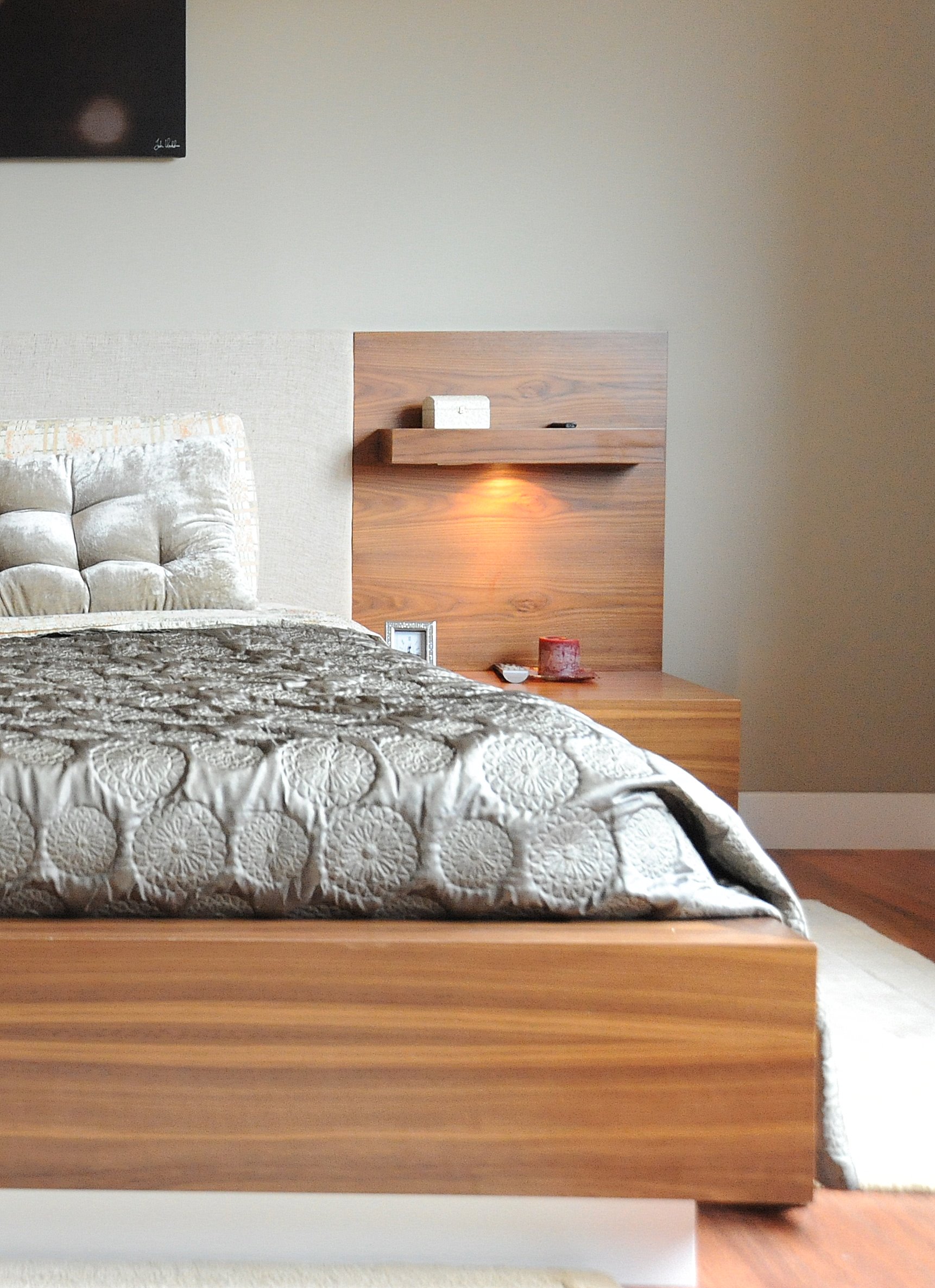 Cama Nogueira E Estofo Linho